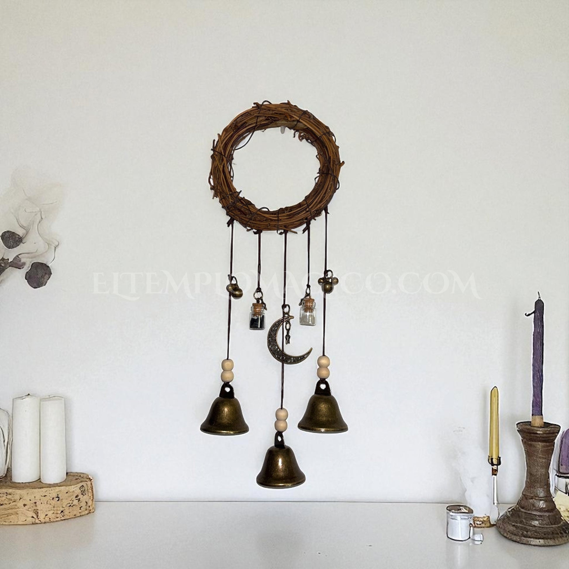 Corona de protección del hogar, carillones de viento mágicos para la positividad y la riqueza, decoración del hogar Campanas de bruja mágicas hechas a mano