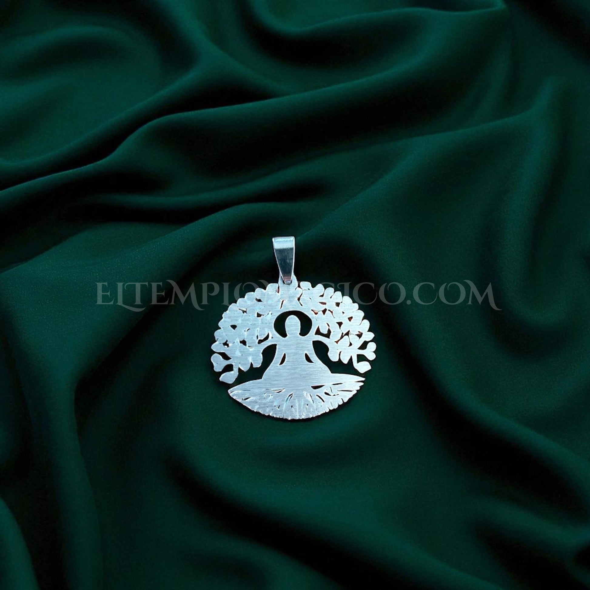 Árbol de la Vida con Buda (32 x 27 mm.) Acero. Incluye collar con cordón