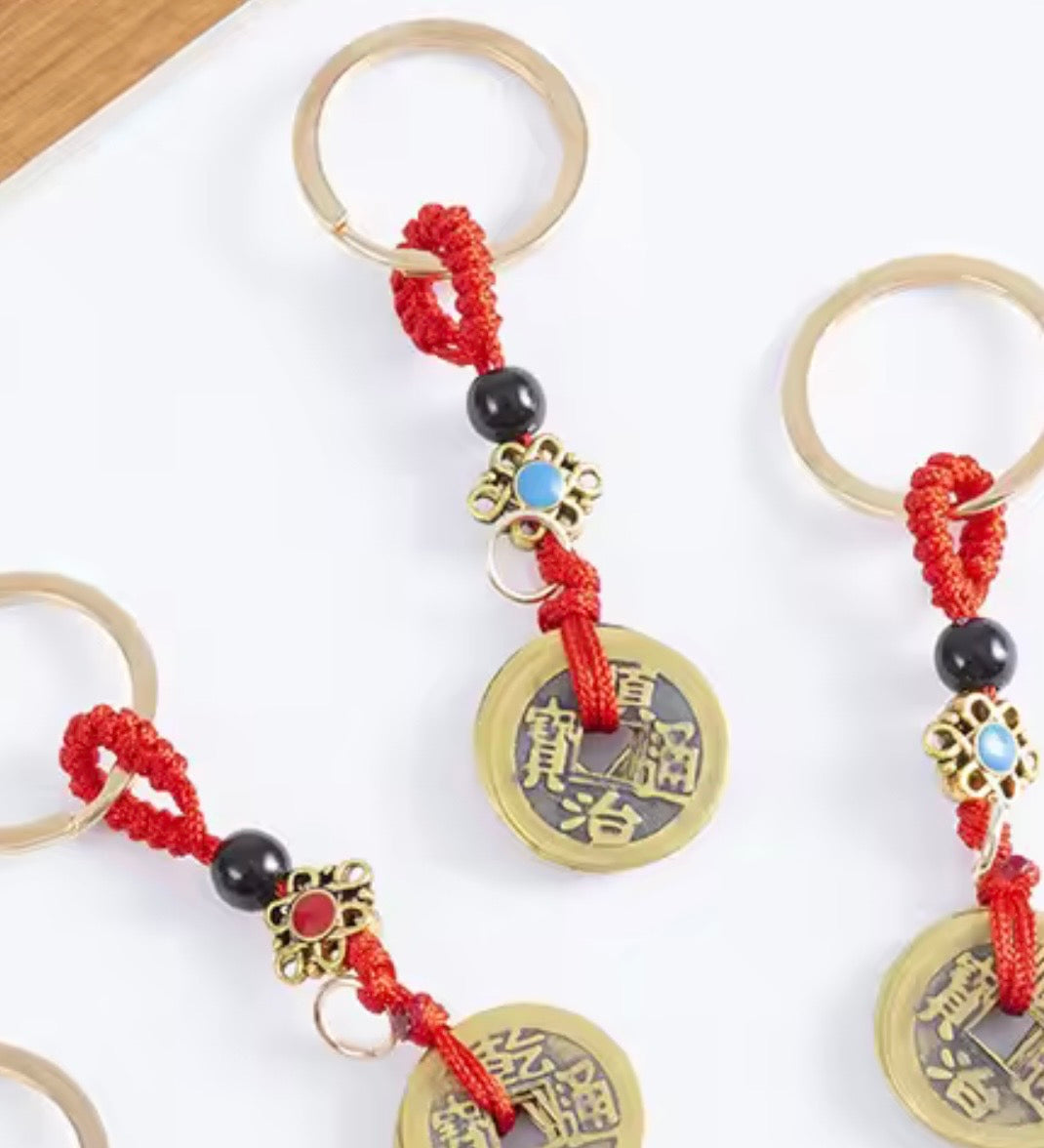 Además, el llavero incluye 5 auténticas Monedas Chinas, cada una con su propio simbolismo auspicioso. 5 nombres de antiguos emperadores chinos, Shunzhi, Kangxi, Qianlong, Yongzheng y Jiaqing, eran grandes hombres y traen felicidad a la gente para buena suerte y riqueza.Estas monedas, con sus caracteres chinos grabados, están destinadas a atraer la riqueza y la prosperidad a tu hogar. Colocadas estratégicamente en el llavero, actúan como imanes de buena fortuna, creando un ambiente propicio para el éxito financiero.